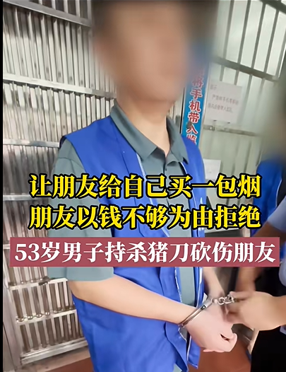 朋友拒绝买烟,男子竟持杀猪刀将朋友砍伤